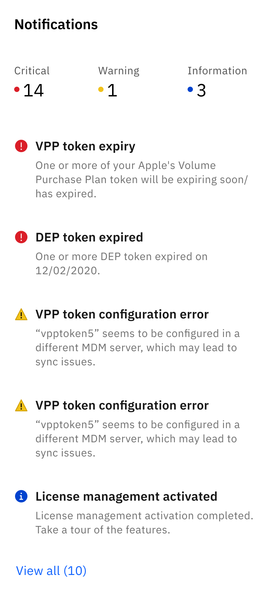 Displays KPIs from critical segments of the product. The homepage provides an overview of key statuses for which admins previously had to navigate deep within the product to access.