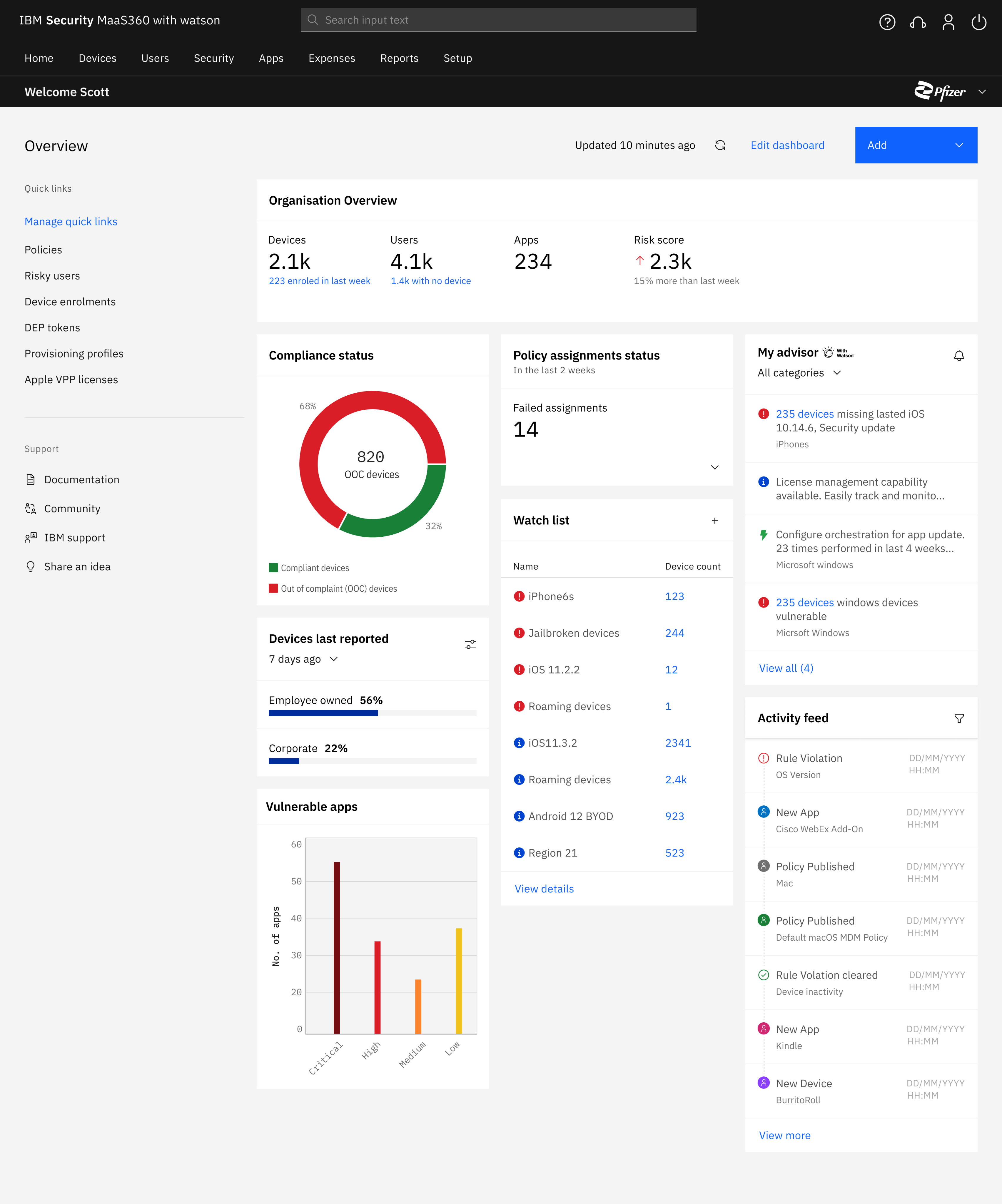 Flexible architecture allows for complete customisation. IT admins can easily change the default setup by dragging and dropping widgets from a (growing) library.